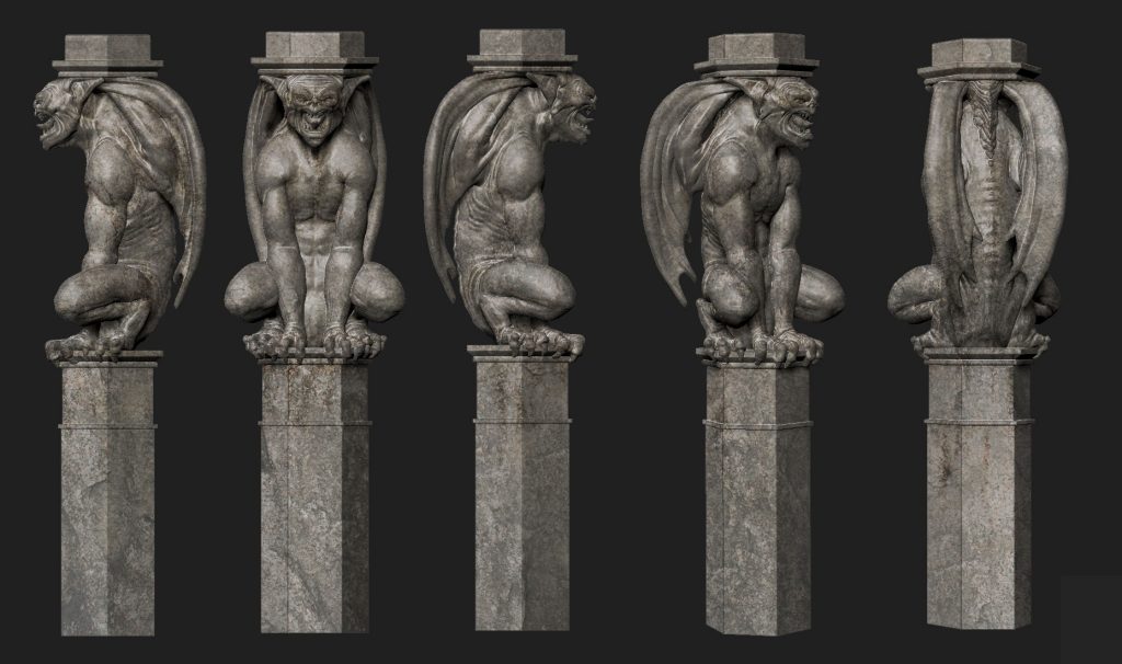 In season two of Penny Dreadful we were hired to help created digital assets to be output in polystyrene to help dress the 'Poole Family' Witches house. The models included gargoyles, stone wall dressings, grave stones and architectural sculptures.