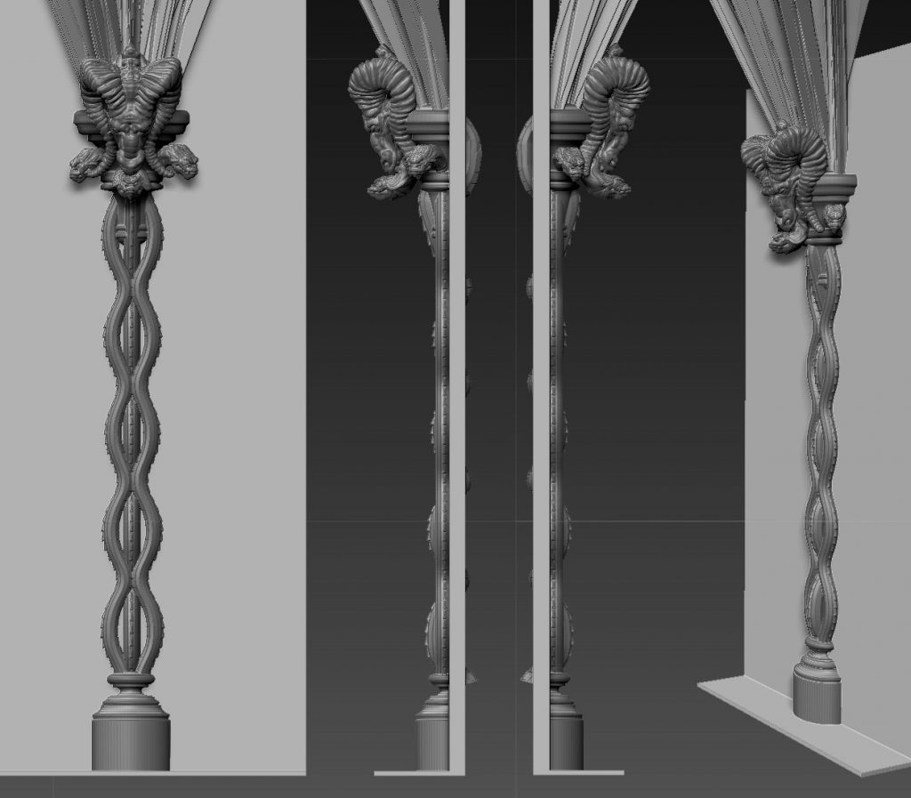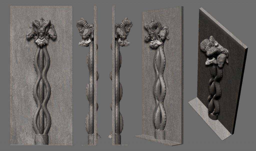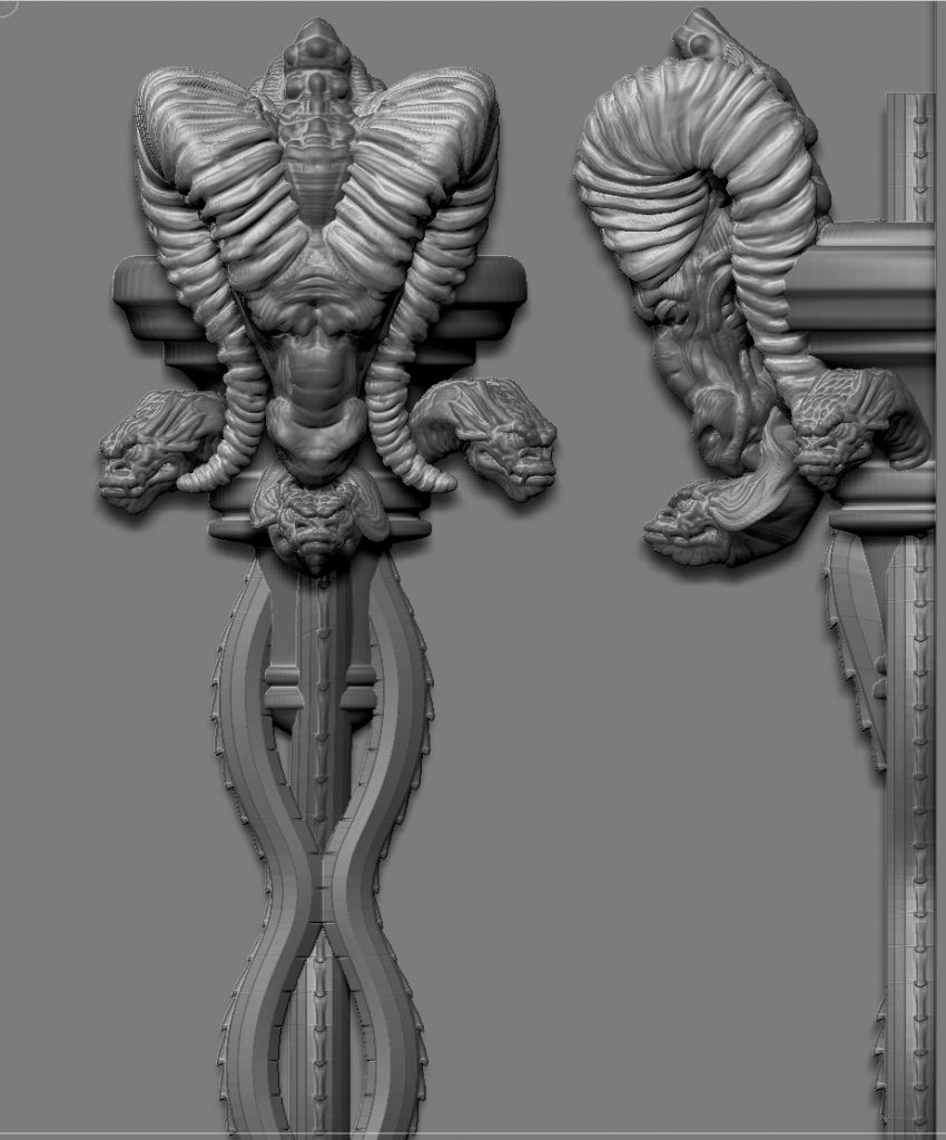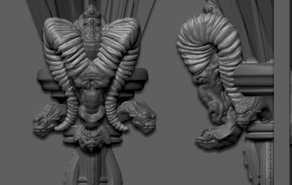 In season 2 one of the main stages was gothic house owned by the ‘Poole’ family who were in fact a coven of witches. The production design called for dark, medievil  stonework in almost every room. We used ZBrush to sculpt all the organic parts of the set and these were sent out to be routed in polystyrene on London and Madrid. The sectioned parts that came back were hard coated and then installed on set before the set decorators did their magic.